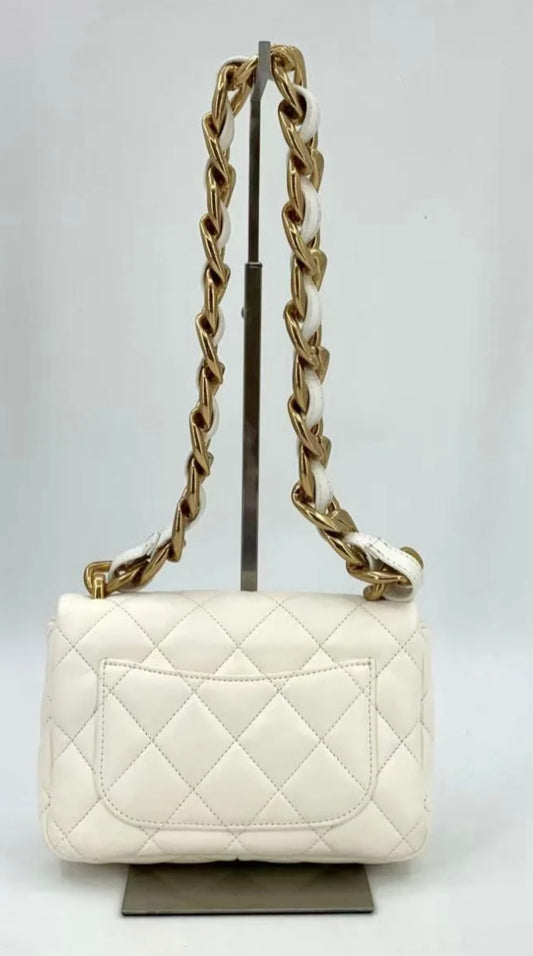 MINI CHANEL FLAP BAG CROSSBODY BEIGE & BLACK LAMBSKIN