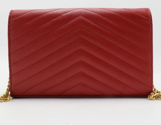 YSL ENVELOPE CROSSBODY RED WITH GOLD CHAIN
