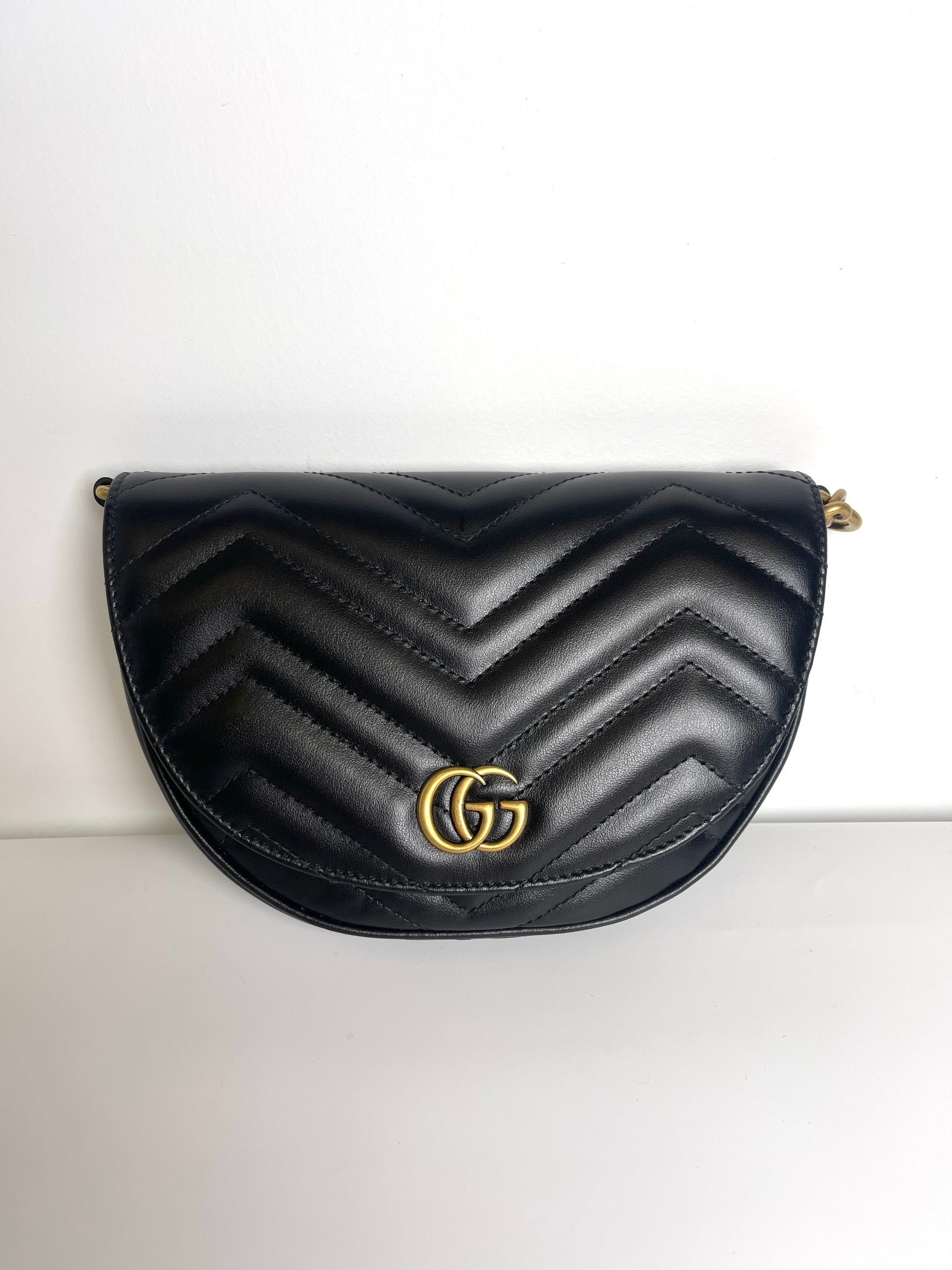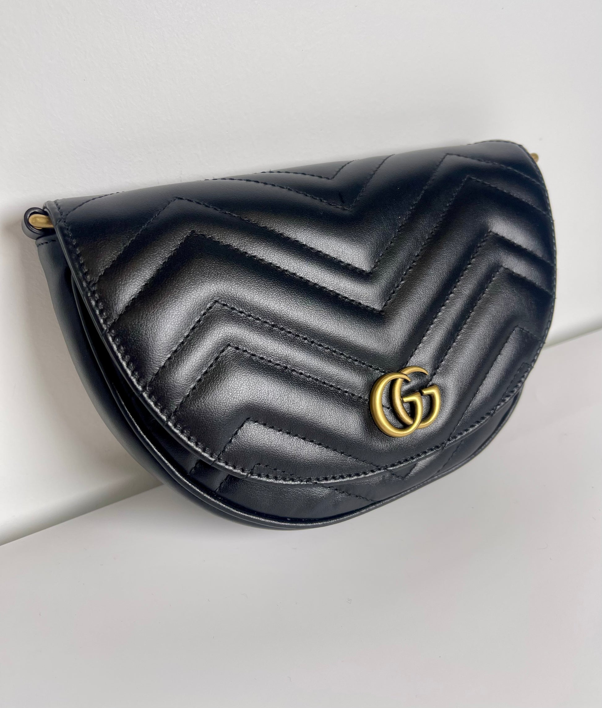 GUCCI BLACK DOUBLE G MARMONT MINI HALF MOON CROSSBODY